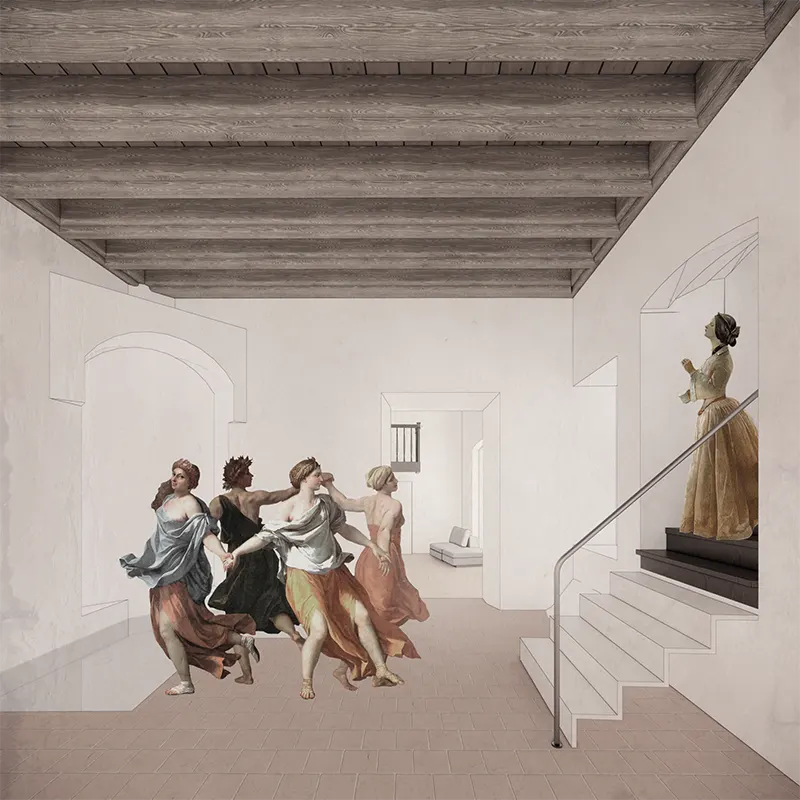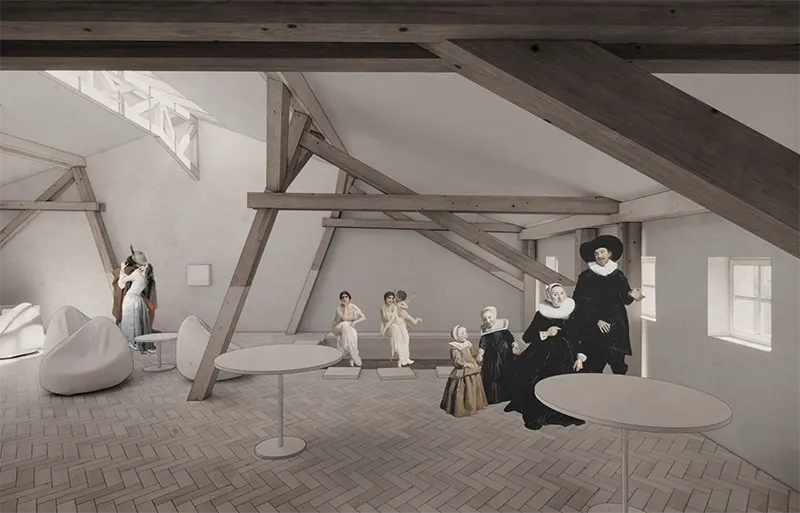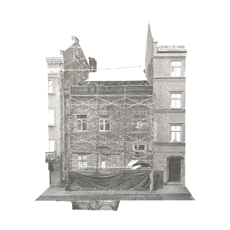 Проєкт передбачає збільшення висоти горищного поверху для розширення функційності будівлі. Тераса на покрівлі, що знаходиться в глибині від фронту